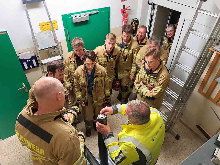 Grundsätzlich gilt: Je höher die Spannung, desto größer muss der Sicherheitsabstand sein. Aber: Wie erkennt man, um welche Art von Stromleitung es sich handelt? Wie groß sind diese Abstände? Wie läuft die Abschaltung einer Stromleitung ab? Und unter welchen Voraussetzungen kann ein Gefahrenbereich betreten werden? Das sind nur einige der Fragen, die im Zuge dieser Übung von den Experten der Salzburg AG Robert Holztrattner und Johannes Unterberger beantwortet wurden.