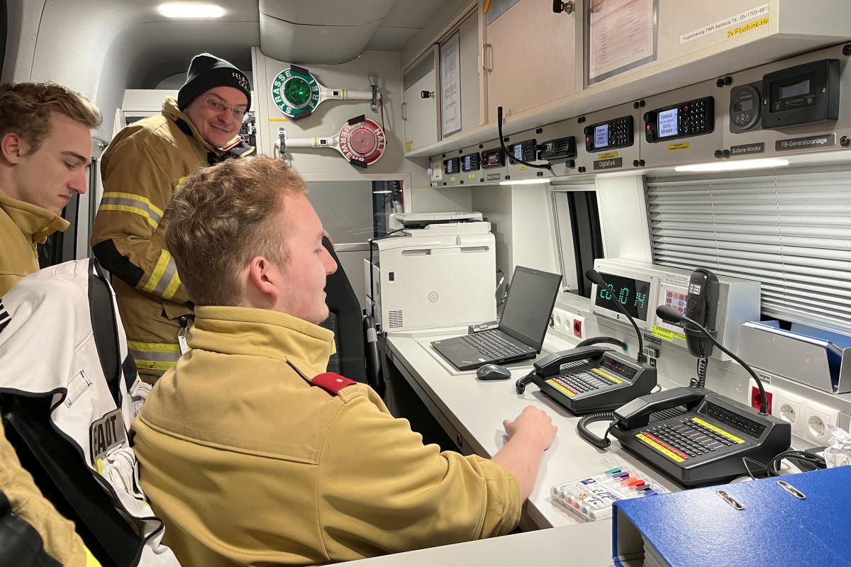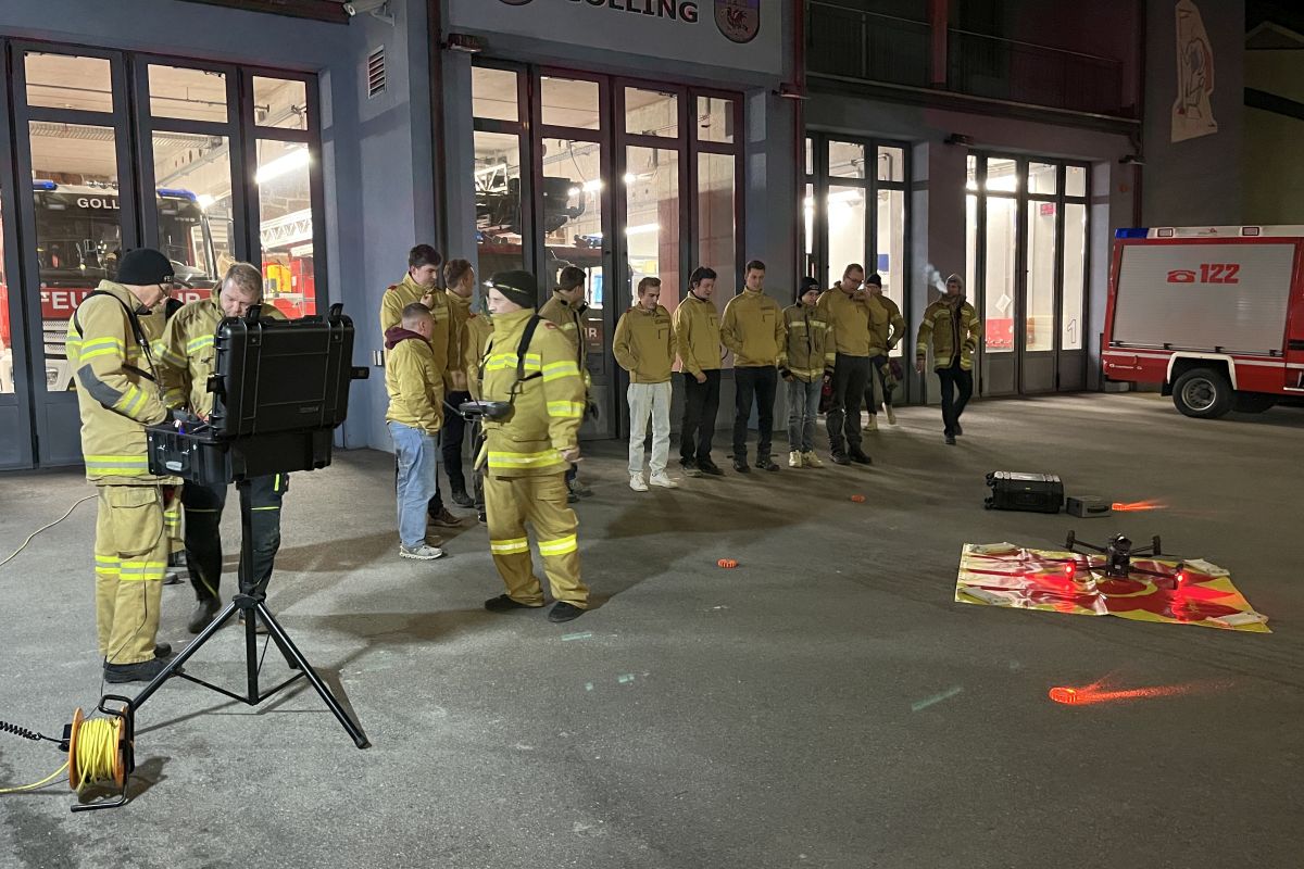 Im Anschluss durften die Gollinger Florianis das Fahrzeug erkunden und bekamen eine praktische Vorführung der Drohne.