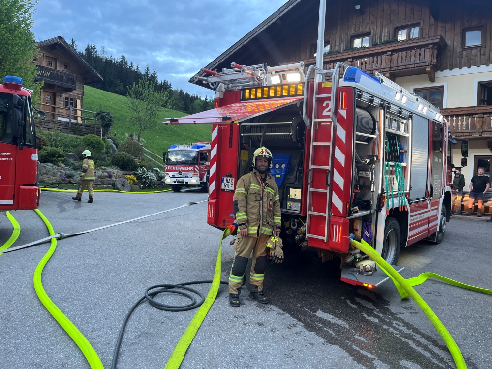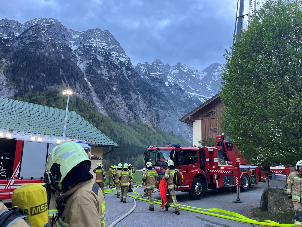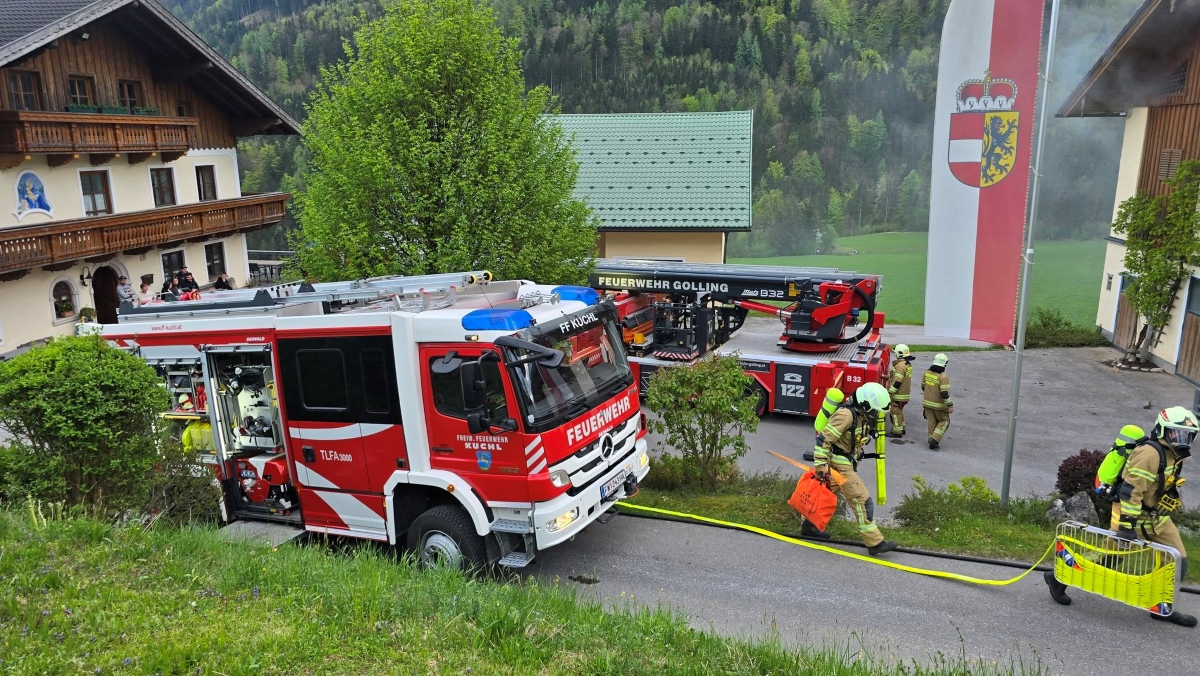 Die Feuerwehr Golling beteiligte sich dabei mit mehreren Fahrzeugen und Aufgaben: Bühne Golling übernahm die Menschenrettung aus dem Obergeschoss des Objektes und führte anschließend die Brandbekämpfung mit dem Wasserwerfer durch. Die Besatzung der Pumpe Golling richtete eine Saugstelle zur Wasserversorgung ein und legte eine mehrere hundert Meter lange Zubringleitung, wobei eine Relaispumpe eingesetzt wurde. Der Atemschutztrupp von Tank 2 konnte mehrere vermisste Kinder aus dem stark verrauchten Heuboden retten.