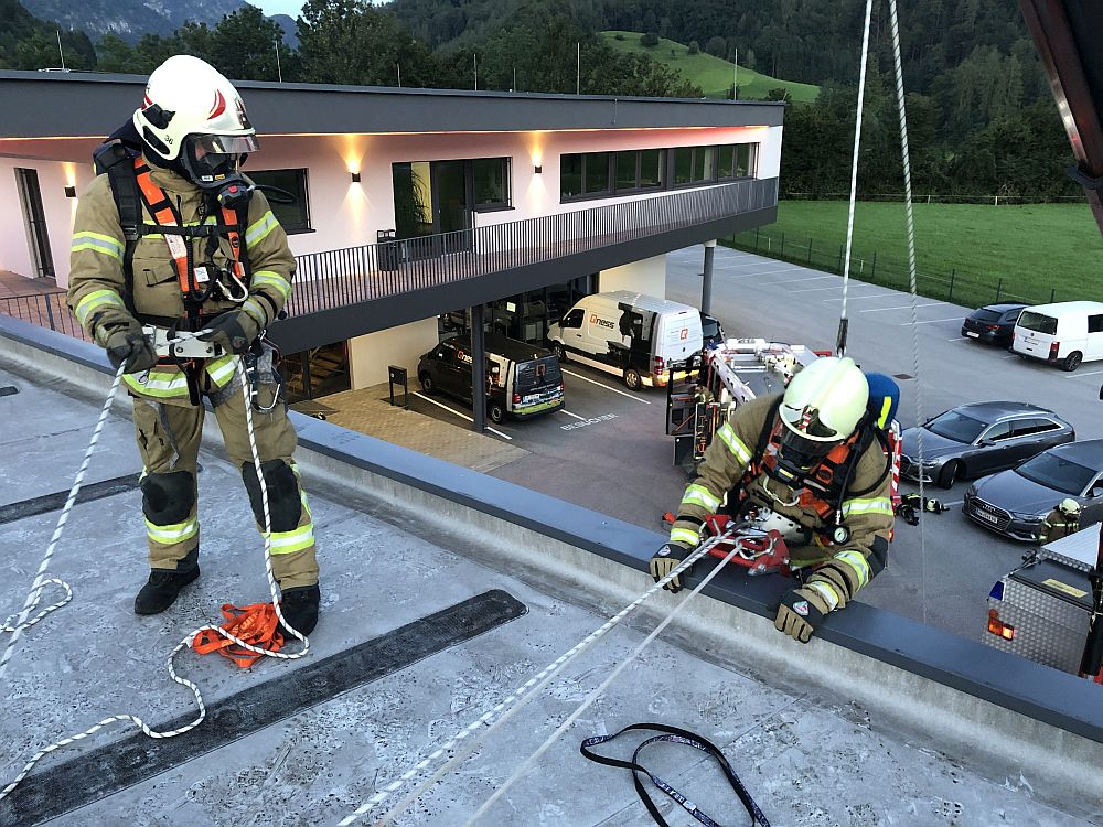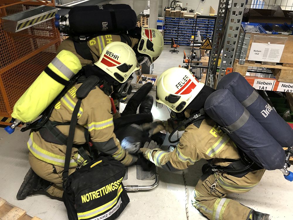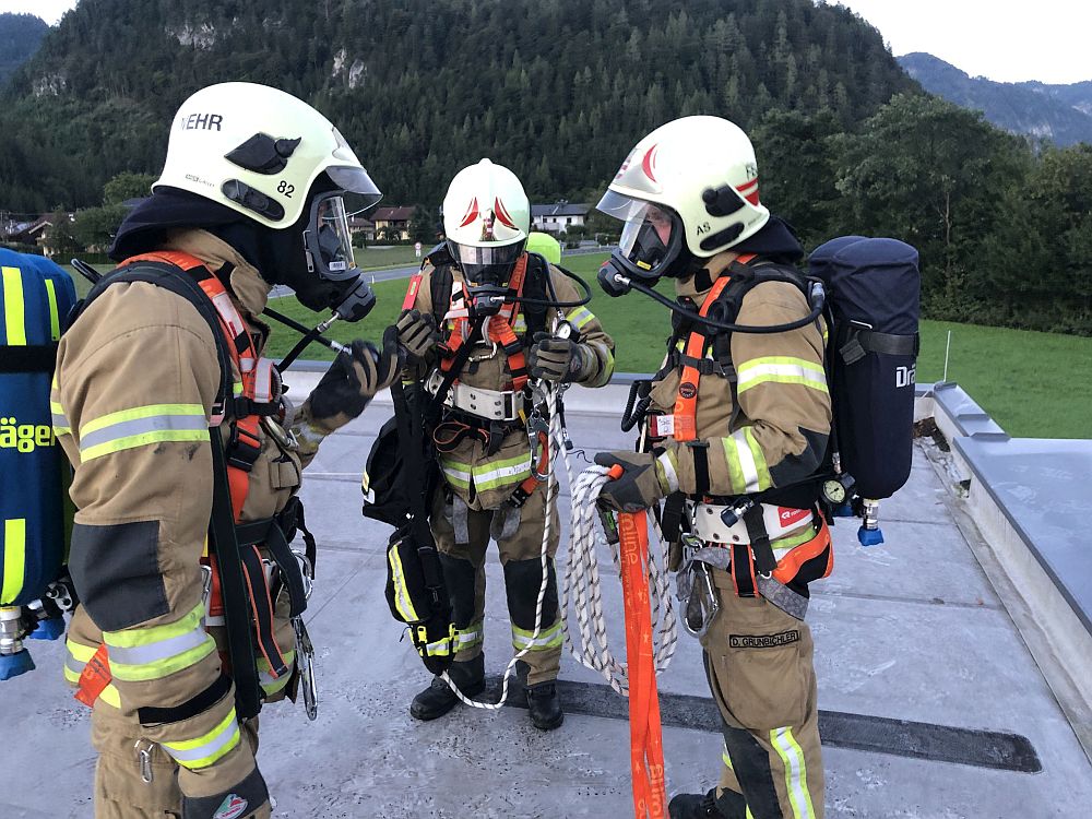 Als Übungsobjekt stellte uns die Firma ATM Qness in Golling-Obergäu dankenswerter Weise das neue Betriebsgebäude zur Verfügung. Das besondere Augenmerk dieser Übung lag im richtigen Anlegen und Ausrüsten mit dem neuen Atemschutz-System, verschiedene Arbeiten unter Belastung (Menschenrettung, Löschangriff, Selbstrettung durch Abseilen) und der entsprechenden Atemschutzüberwachung. Damit die Geräteträger mit dem Überdrucksystem in der praktischen Anwendung vertraut werden, wurden mehrere Trupps ausgerüstet und durchliefen sämtliche Stationen an diesem Ausbildungsabend. Parallel erfolgte im Rahmen dieser Übung noch ein genaueres Kennenlernen der Betriebsräumlichkeiten für den eventuellen Einsatzfall.