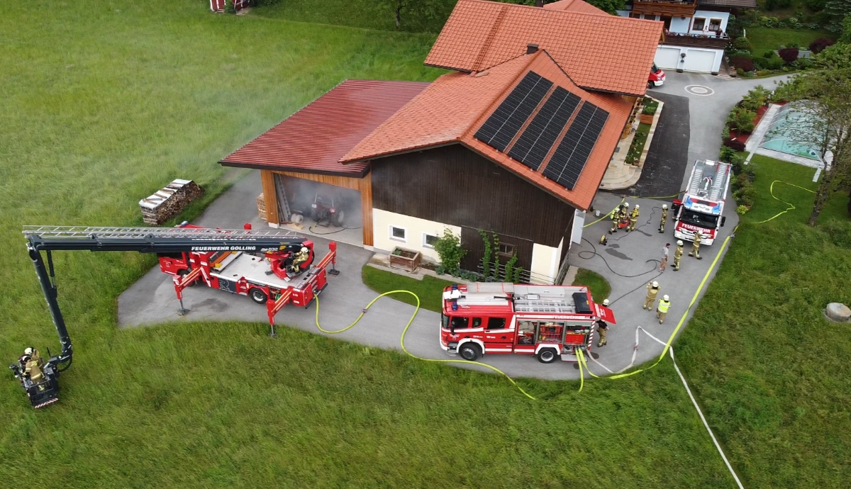 An diesem Donnerstag wurde die erste größere Objektübung in diesem Sommer abgehalten. Übungsannahme war ein Brand eines Traktors in einem landwirtschaftlichen Objekt, bei dem zwei Menschen vermisst wurden.
