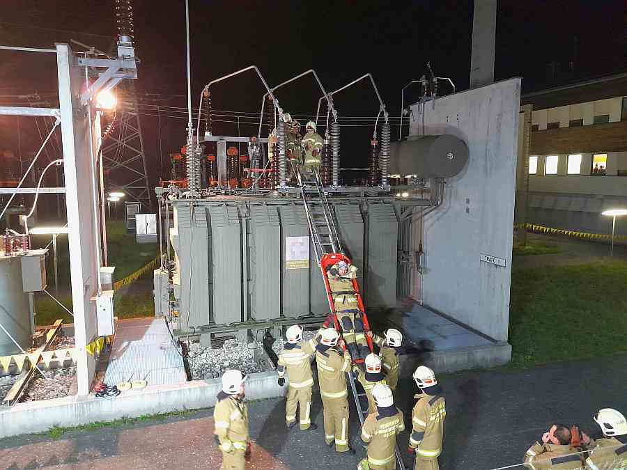 Bei dieser Zugsübung durften die Kameraden der Feuerwehr Golling das Umspannwerk (UW) der Salzburg AG in Golling besichtigen. Auch ein verunfallter Techniker wurde im Zuge dieser Übung von einem Trafo geborgen.