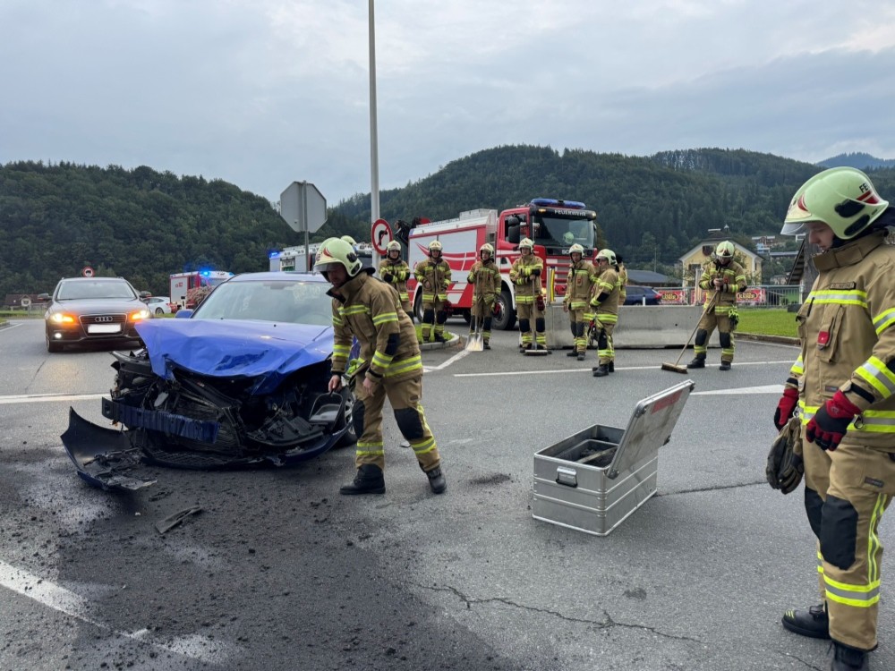 Am Donnerstagabend um 22:34 Uhr wurde die Feuerwehr Golling zu einem Verkehrsunfall in die Moartalstraße alarmiert. Zwei Fahrzeuge waren im Bereich einer Ausfahrt kollidiert.