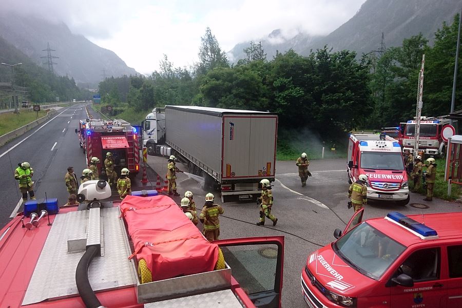 Gegen 10:15 Uhr wurden die Feuerwehren Golling, Werfen und Pfarrwerfen alarmiert. Laut Autobahnmeisterei befand sich im Hieflertunnel der A10 Tauernautobahn in Fahrtrichtung Villach ein stark rauchender Sattelzug. Umgehend rückten beide Tanklöschfahrzeuge und Voraus Golling aus, noch auf der Anfahrt wurden zwei Atemschutztrupps ausgerüstet. Die Anfahrt für das erste Fahrzeug gestaltete sich zunächst recht schwierig, da einige Fahrzeuge keine Rettungsgasse gebildet hatten.