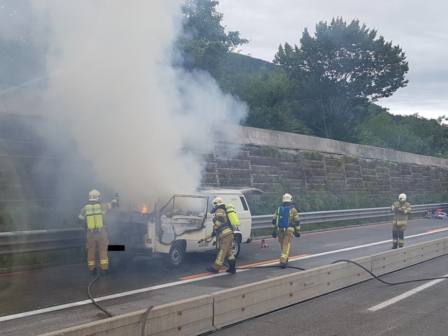 Im Baustellenbereich zwischen Kuchl und Golling kam es am Sonntag, den 08.08.2021 zu einem Pkw-Brand.