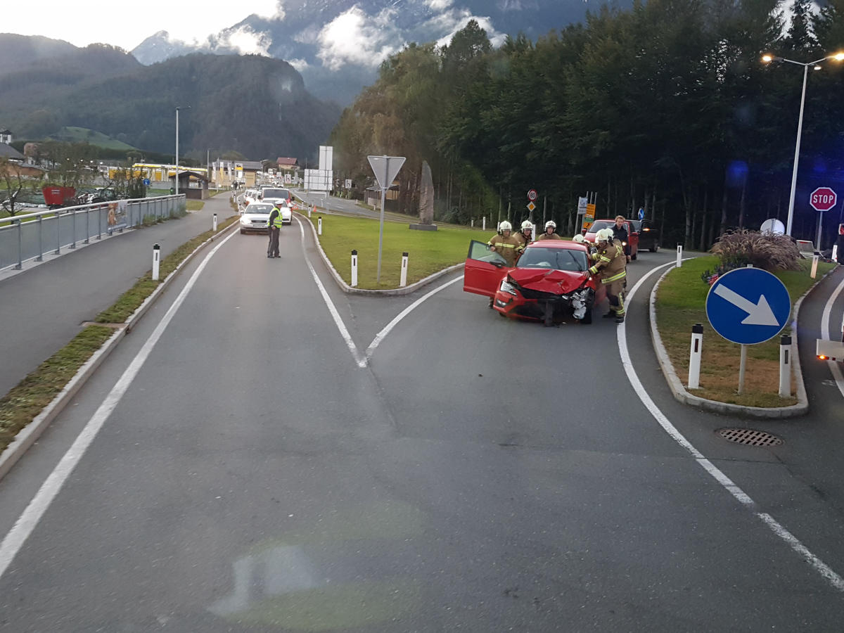 Zwei Fahrzeuge waren im Frühverkehr an der Autobahnzubringerkreuzung B159 zusammengestoßen. Beide Fahrzeuglenker wurden bei diesem Verkehrsunfall leicht verletzt.