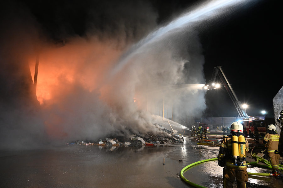 Zu einem Brand in einem Entsorgungsbetrieb kam es am Donnerstagabend in St. Johann. Aus noch ungeklärter Ursache entwickelte sich ein Brand in der Müllsortieranlage. Nach Eintreffen der ersten Einsatzkräfte der Feuerwehr St. Johann wurde durch den Einsatzleiter umgehend auf Alarmstufe 4 erhöht.