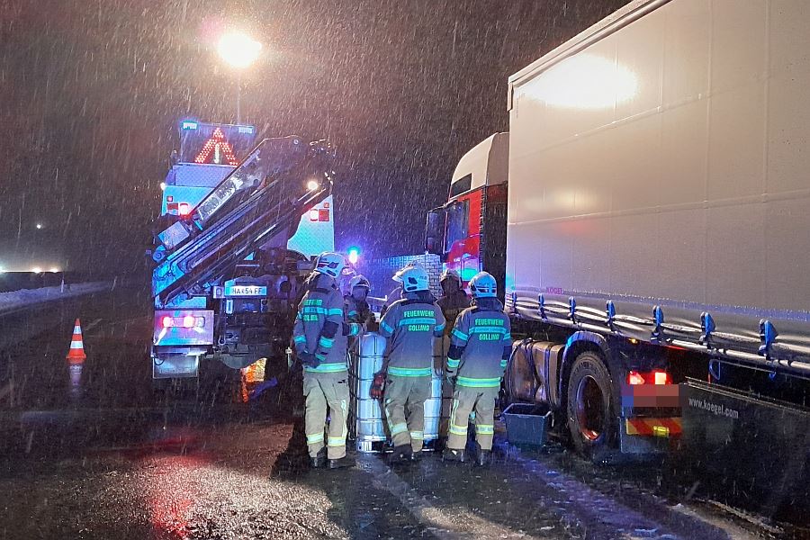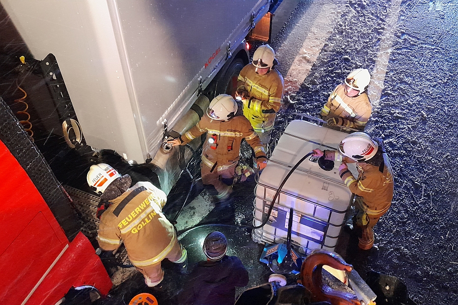 In den frühen Morgenstunden wurde die Feuerwehr Golling zu einem LKW mit leckgeschlagenem Tank auf der Autobahn A10 alarmiert.