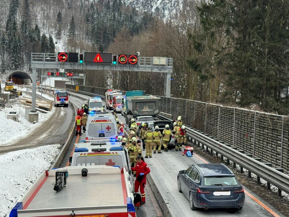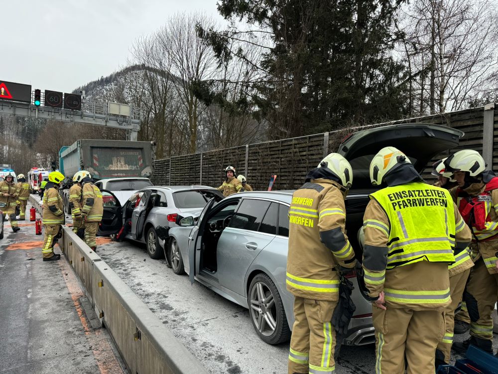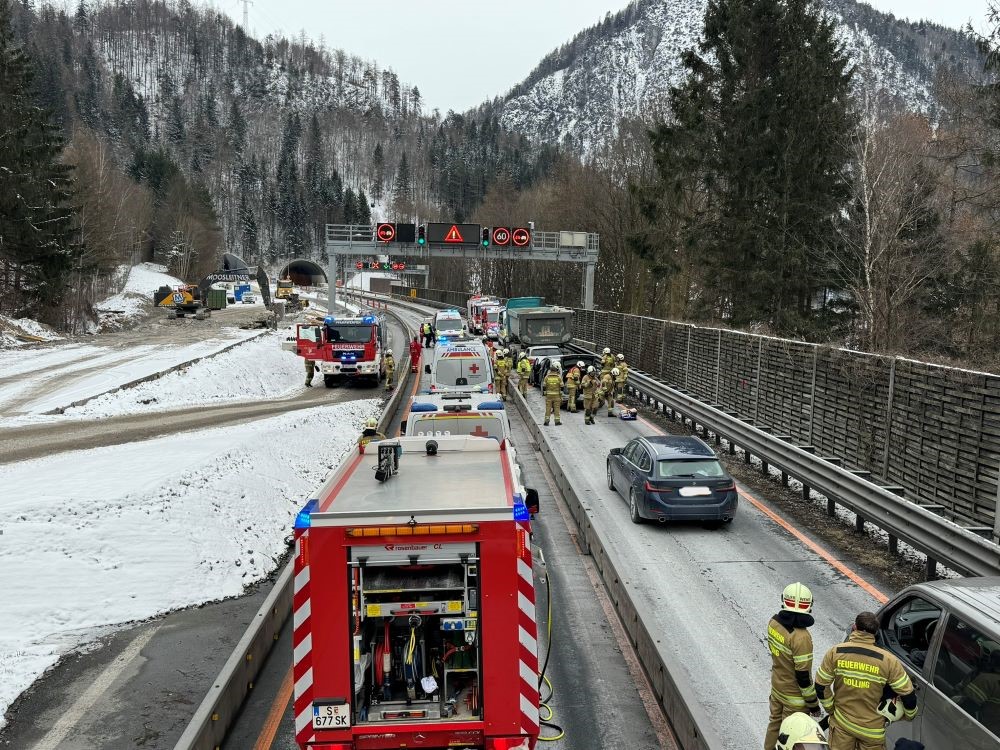 Zu einem Verkehrsunfall mit drei Autos und einem LKW auf der A10 Tauernautobahn wurde die Feuerwehr Golling gemeinsam mit den Feuerwehren Werfen und Pfarrwerfen am Mittwochvormittag alarmiert.