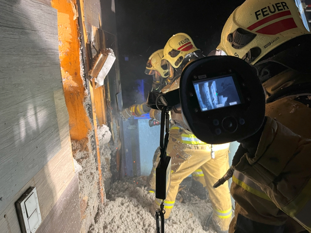 Bereits während der Anfahrt rüsteten sich in den beiden Tankwägen Atemschutztrupps für die Brandbekämpfung bzw. Menschenrettung aus. Vor Ort konnte durch den Einsatzleiter ein Brand im Bereich eines Balkons im zweiten Obergeschoß eines Mehrparteienhauses festgestellt werden, welcher bereits auf die Fassade übergegriffen hatte. Glücklicherweise befanden sich keine Menschen mehr in der vom Brand betroffenen Wohnung. Ein Atemschutztrupp konnte mit dem Hohlstrahlrohr von Bühne Golling den Brand rasch unter Kontrolle bringen. Die Fassade wurde geöffnet, restliche Glutnester abgelöscht und der Bereich mit der Wärmebildkamera kontrolliert. Im Anschluss konnte durch den Einsatzleiter „Brand aus“ gegeben werden.