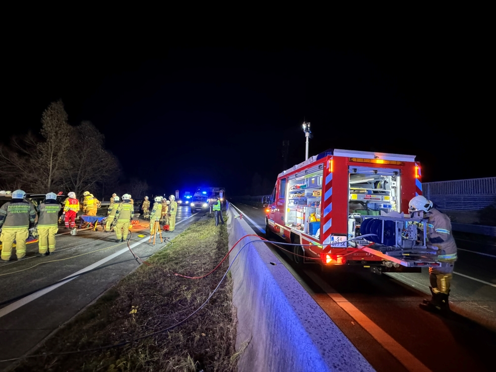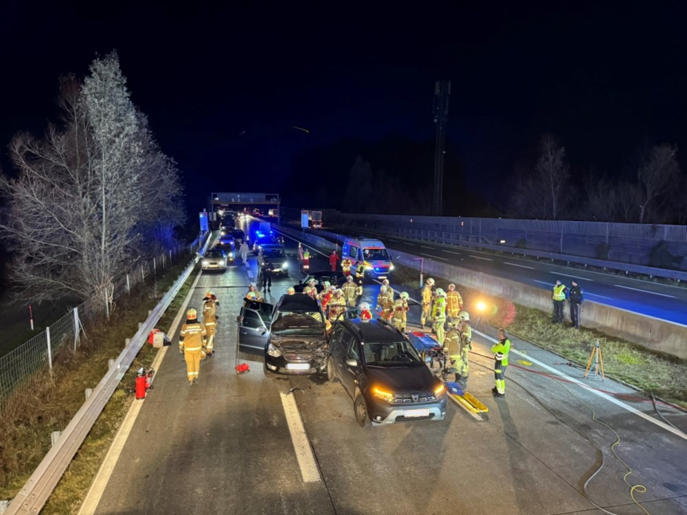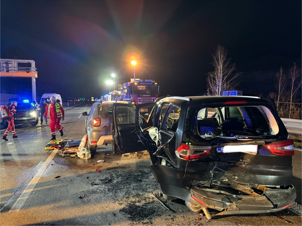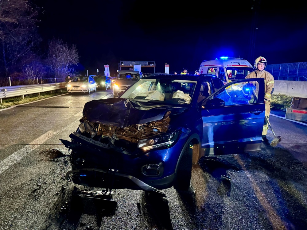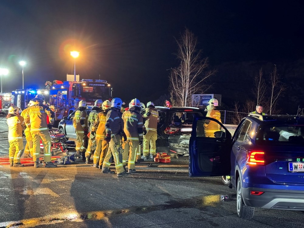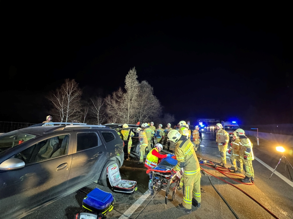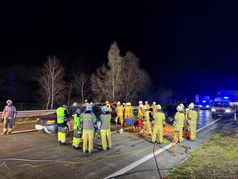 Um 22:18 Uhr wurde die Feuerwehr zum zweiten Einsatz an diesem Abend alarmiert. Auf der A10 Tauernautobahn ereignete sich ein Verkehrsunfall mit drei Fahrzeugen. Eine Person war dabei in ihrem Fahrzeug eingeschlossen und musste mit dem hydraulischen Rettungsgerät befreit werden.