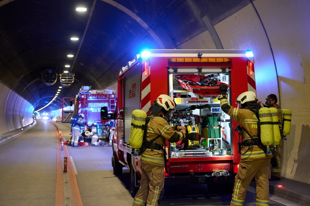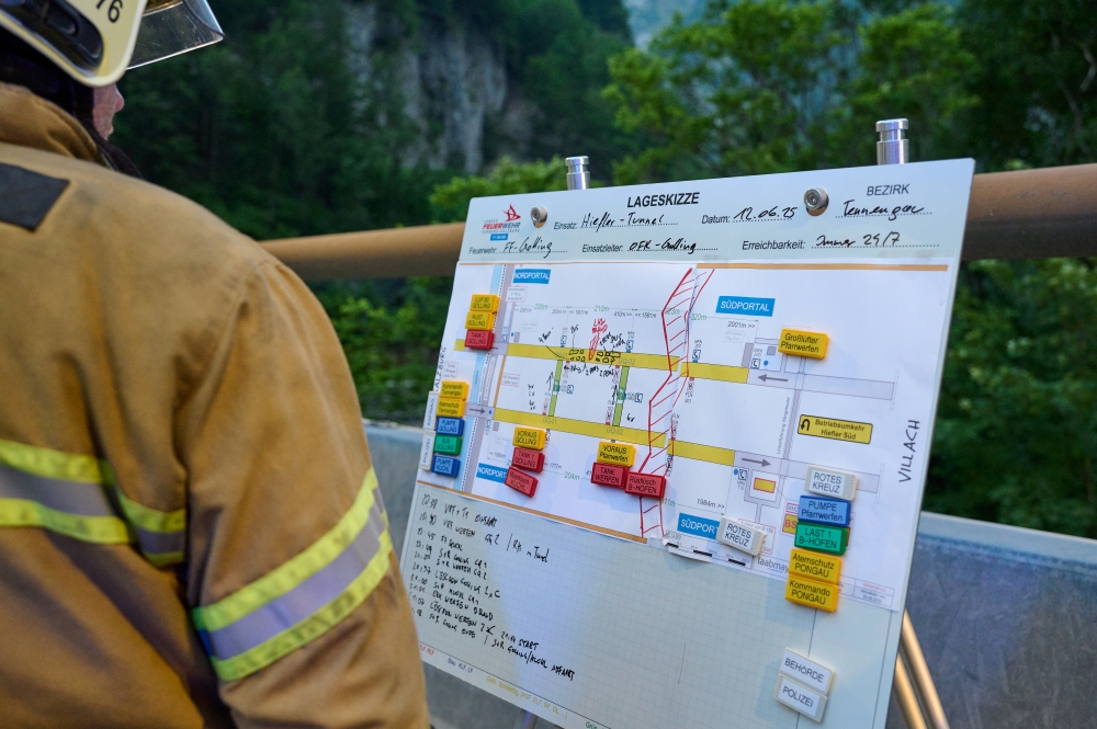 Bei der Übung ging es nicht nur um die Anwendung der österreichweit vereinheitlichten Taktik zum Vorgehen bei Tunnelbränden, sondern auch um das Kennenlernen und Testen der neuen Technik in den von Grund auf neu eingerichteten Tunnelanlagen.