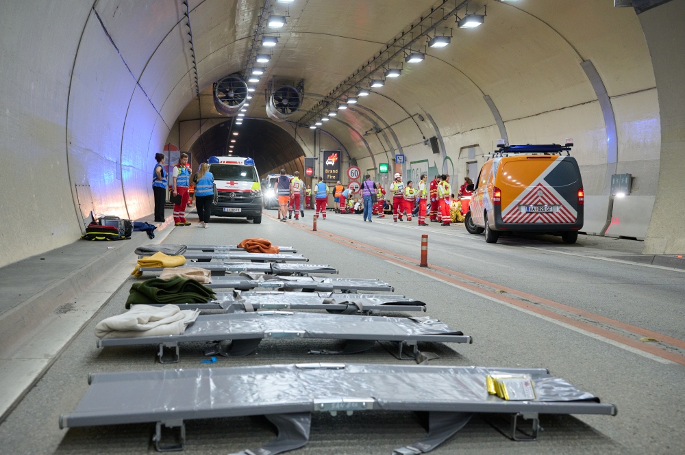 Eine Besonderheit war außerdem, dass erstmals beide Fahrtrichtungen für die Übung gesperrt werden konnten. Dieser Umstand war besonders für die Feuerwehren enorm wichtig, da die Einsatztaktik nur so realitätsnah geübt werden kann. Diese sieht vor, über die Querschläge von der nicht betroffenen Tunnelröhre in die Schadröhre hinüberzuarbeiten und die verletzten Personen auf dem selben Weg in die nicht betroffene Röhre zu evakuieren, wo sie dem Roten Kreuz übergeben werden.