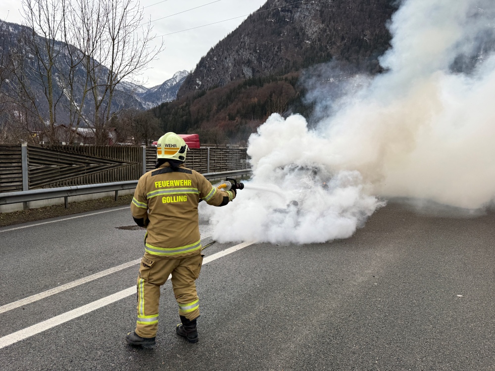 Zu einem PKW-Brand auf der A10 Tauernautobahn wurde die Feuerwehr Golling am Sonntag um 13:05 Uhr alarmiert. Binnen weniger Minuten rückten 22 Mann mit drei Fahrzeugen zum Brandeinsatz aus.