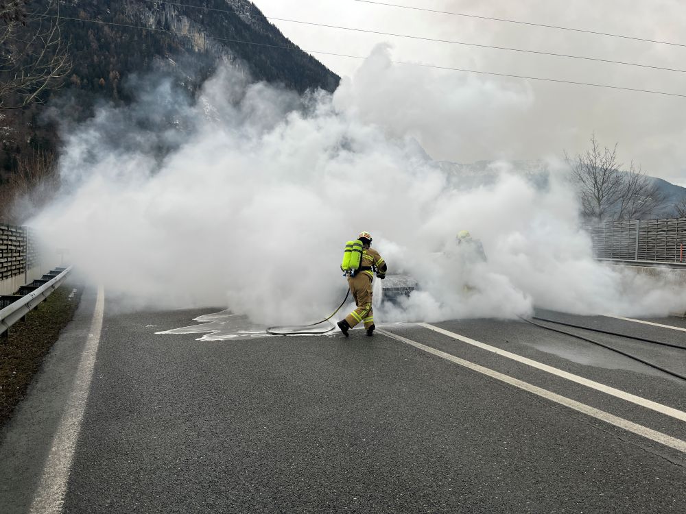 Beim Eintreffen des ersten Fahrzeuges an der Einsatzstelle stand der Motorraum des PKW bereits in Vollbrand. Mithilfe der Polylöschanlage von Voraus Golling wurde umgehend ein erster Löschangriff gestartet. Die Atemschutztrupps der nachfolgenden Tanklöschfahrzeuge brachten den Brand mit mehreren HD-Rohren schlussendlich schnell unter Kontrolle. Mit Hilfe des Akku-Spreizers wurde der Motorraum geöffnet, mit der Wärmbildkamera kontrolliert und Nachlöscharbeiten durchgeführt.