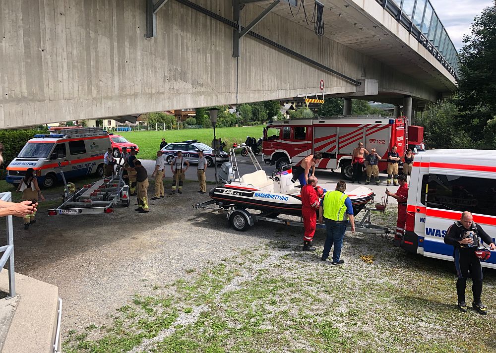 Der Sucheinsatz wurde in der Zwischenzeit durch eingetroffene Kräfte der Feuerwehren Hallein, Austrocell und der Wasserrettung mit Booten, Tauchern und Suchtrupps entlang der Salzach zwischen Golling und Hallein ausgedehnt, da man nach wie vor von weiteren Personen im Wasser ausgehen musste.