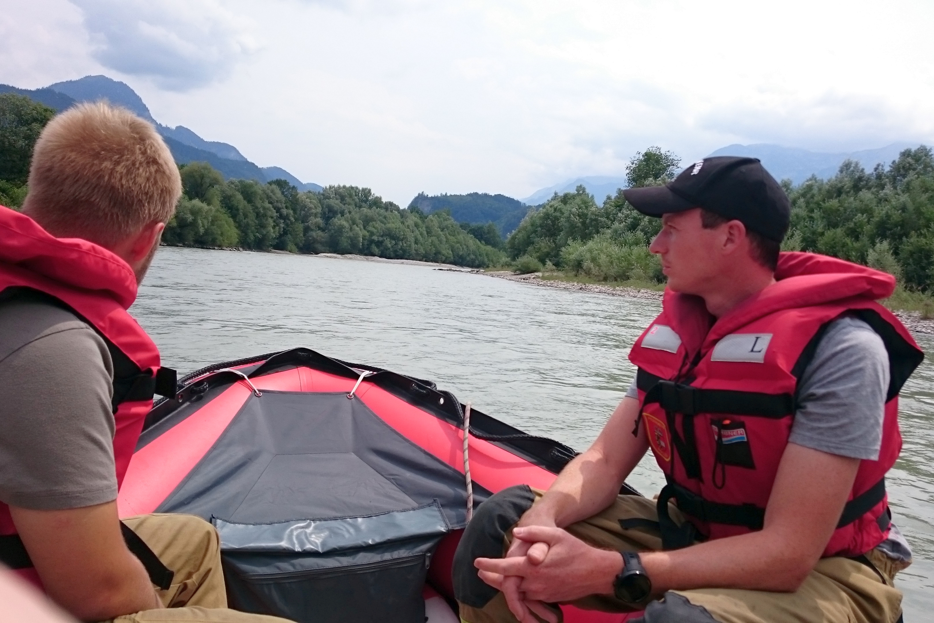 Da inzwischen auch vom Schlimmsten auszugehen war, wurde der Staubereich des Kraftwerkes Gamp spätabends von der Feuerwehr Hallein und der Wasserrettung mit einem speziellen Schleppsonar befahren. Dieses feinfühlige Gerät ist in der Lage, mittels Sonar, welches von einem Boot hinterhergeschleppt wird, Körper, welche sich am Flussgrund befinden, zu orten und auf einem Laptop darzustellen.