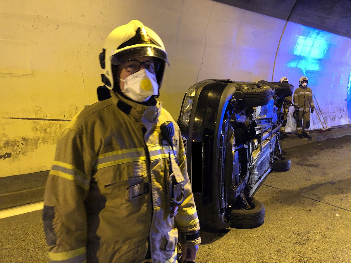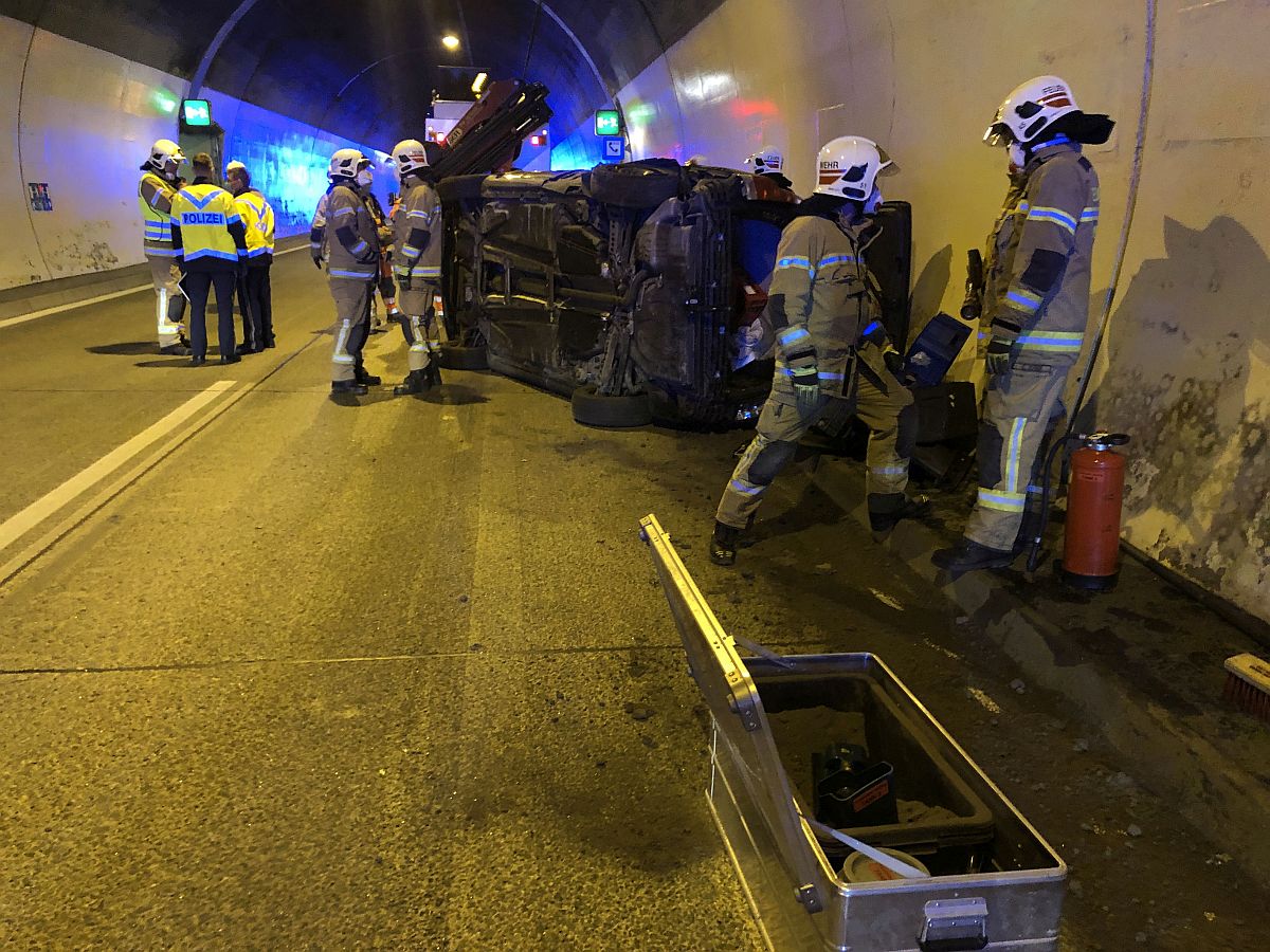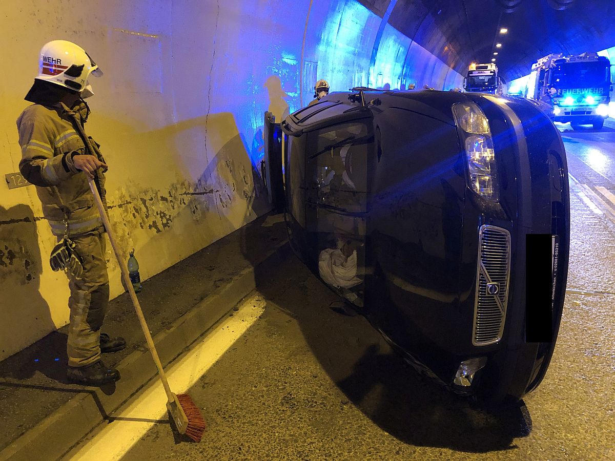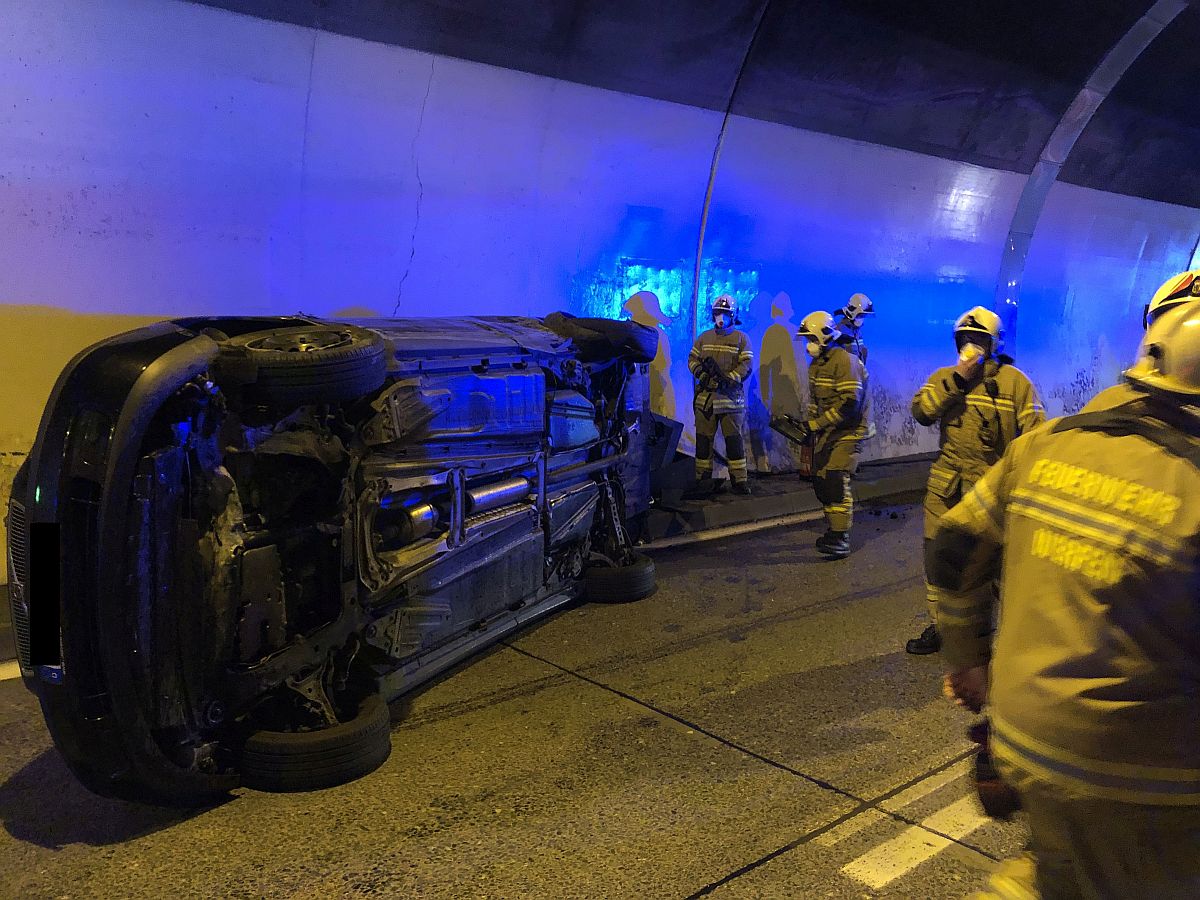 Zu einem schweren Verkehrsunfall kam es am Montag, dem 18. Mai gegen 17:00 Uhr im Hieflertunnel auf der A10 im Bereich Golling, Fahrtrichtung Villach. Ein Pkw geriet aus noch ungeklärter Ursache ins Schleudern und kam schwer beschädigt auf der Seite liegend zum Stillstand, eine Person wurde dabei verletzt.