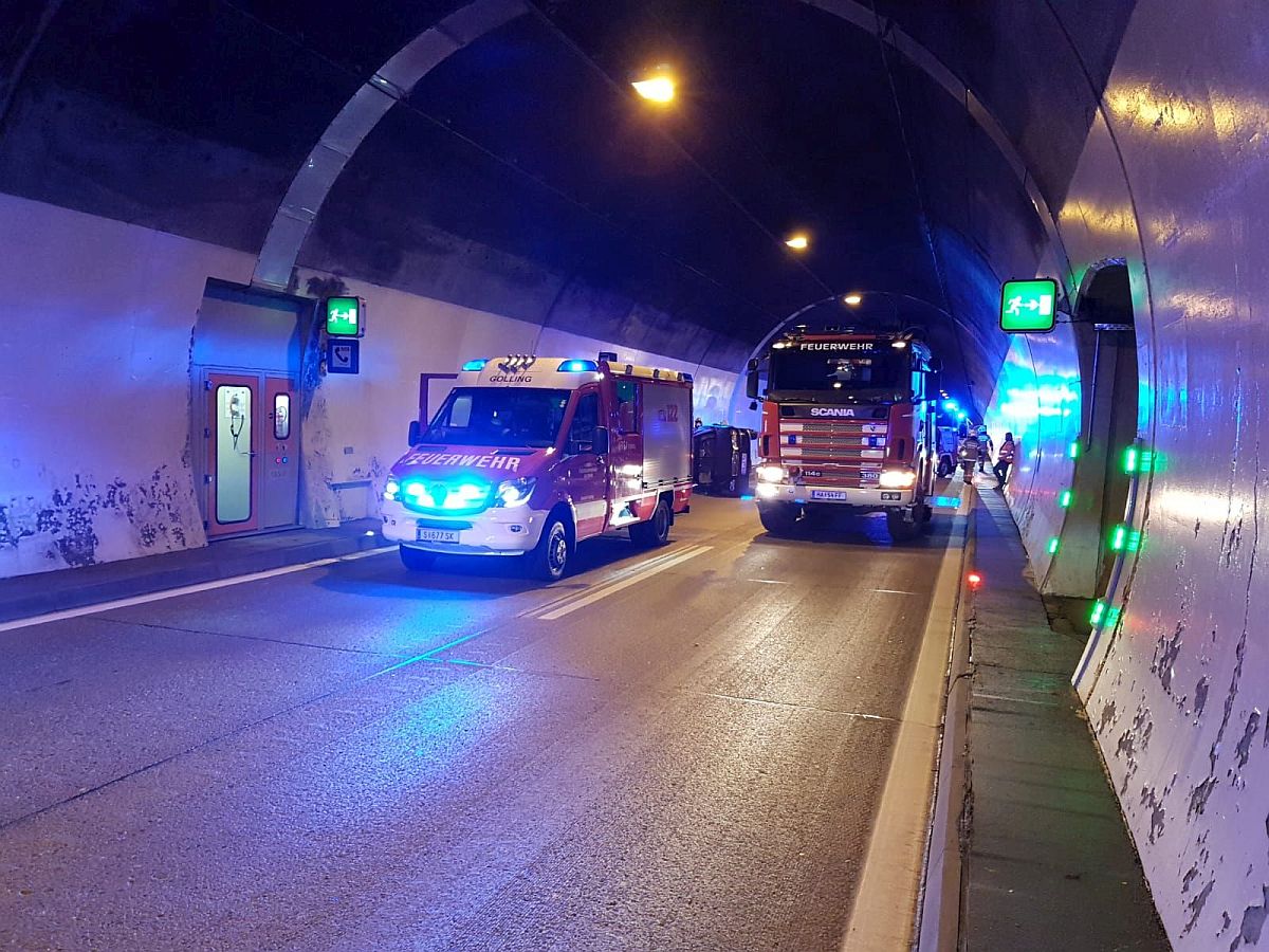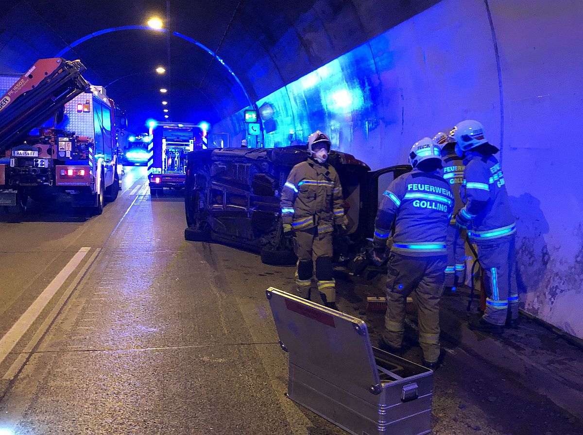 Die Feuerwehr Golling wurde um 17:10 Uhr durch die LAWZ Salzburg alarmiert und rückte mit 5 Fahrzeugen und 22 Mann in den Hieflertunnel, A10 Fahrtrichtung Süden, aus. Zeitgleich wurden aufgrund der unklaren Lage auch die Feuerwehren Werfen und Pfarrwerfen gemäß Sonderalarmplan alarmiert. Bei Ankunft der FF Golling wurde zunächst die verletzte Person bis zum Eintreffen des Roten Kreuz durch die Feuerwehr erstversorgt. Weiteres wurde ein mehrfacher Brandschutz aufgebaut und das Fahrzeug gesichert.
