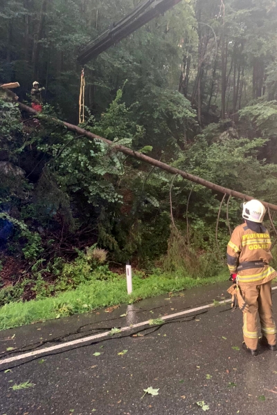 In der Zeit zwischen 19:07 Uhr und 21:40 mussten insgesamt 14 Einsätze bewältigt werden, darunter mehrere umgestürzte bzw. entwurzelte Bäume. Den Anfang machte ein Baum, der die sichere Abfahrt von der Autobahn Richtung Golling behinderte. Besonders im Bereich Pass Lueg wurde die B159 von mehreren Bäumen blockiert. Die Straßenmeisterei übernahm diesen Einsatz nach einiger Zeit, um die Kräfte der FF Golling für die vielen anderen Einsätze frei zu spielen. Die Bundesstraße war für längere Zeit gesperrt.