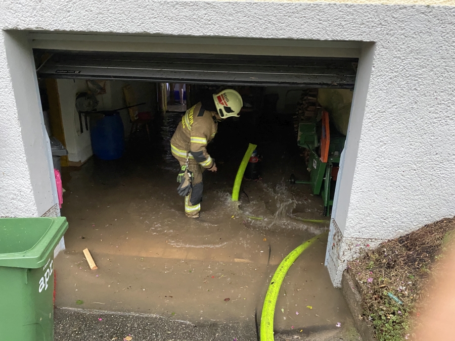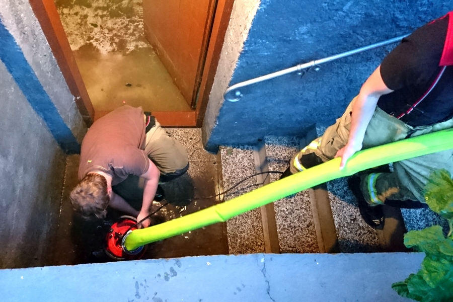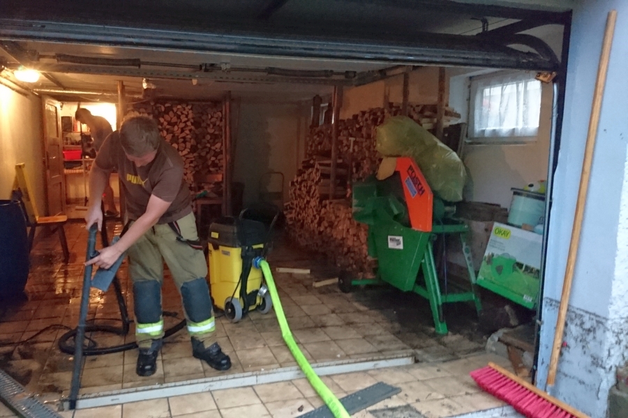 Einen weiteren Schwerpunkt bildeten Auspumparbeiten; besonders in der Wasserfallstraße im Ortsteil Torren standen mehrere Keller unter Wasser. Diese wurden mit mehreren Tauchpumpen und Nasssaugern wieder trockengelegt.