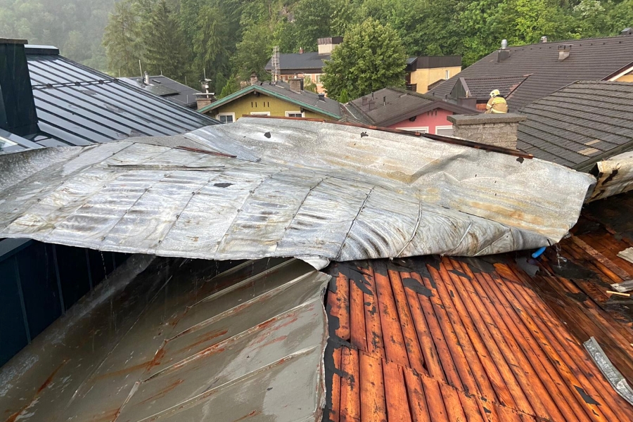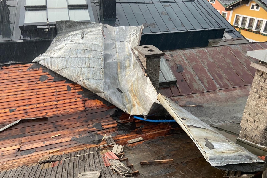 Den umfangreichsten Einsatz bildeten aber ein teilweise abgedecktes Dach in der Marktstraße; eine größere Fläche eines Blechdaches hatte sich durch den Sturm gelöst. Der abgehobene, aber nicht abgerissene Teil musste gesichert werden. Anschließend wurde der offene Teil des Daches provisorisch mit Planen und Holzlatten abgedeckt.