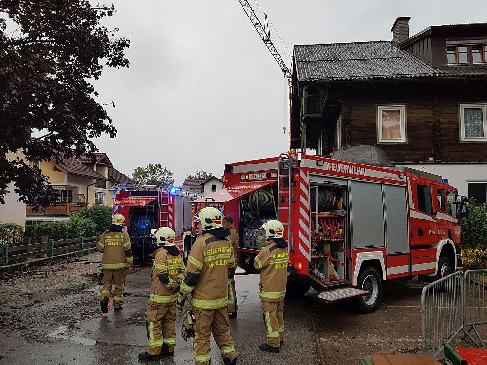 Vorsorglich unterstützten noch die Kameraden der Feuerwehr Hallein mit der Drehleiter und zwei weiteren Fahrzeugen in Bereitschaft den Einsatz.