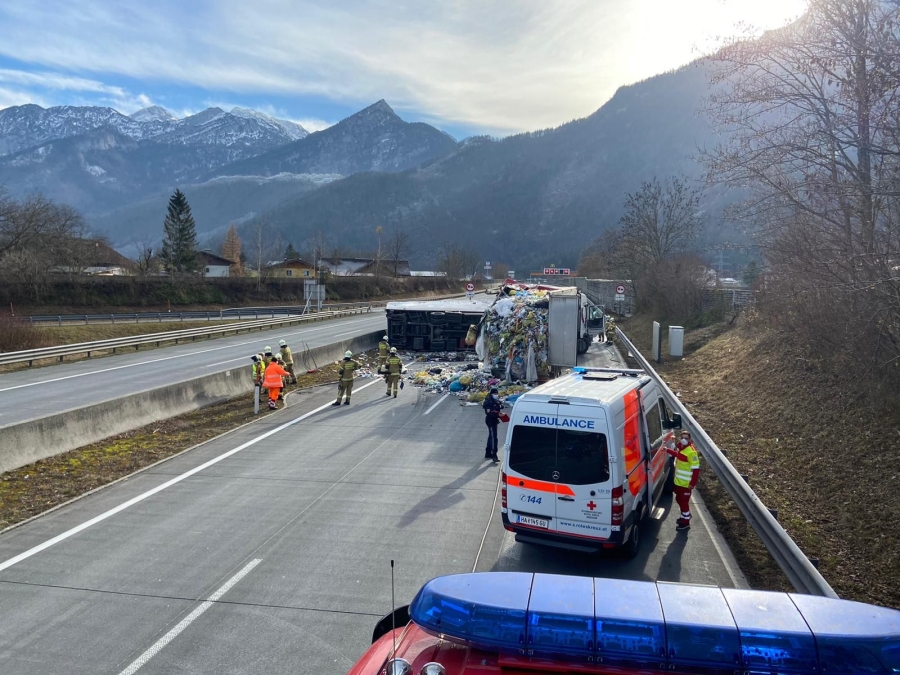 Der Unfall ereignete sich kurz nach der Auffahrt in Fahrtrichtung Villach. Ein Sattelschlepper war, aus noch ungeklärter Ursache, auf einen zweiten LKW, welcher mit Müll beladen war, aufgefahren und kam auf der Seite zum Liegen.