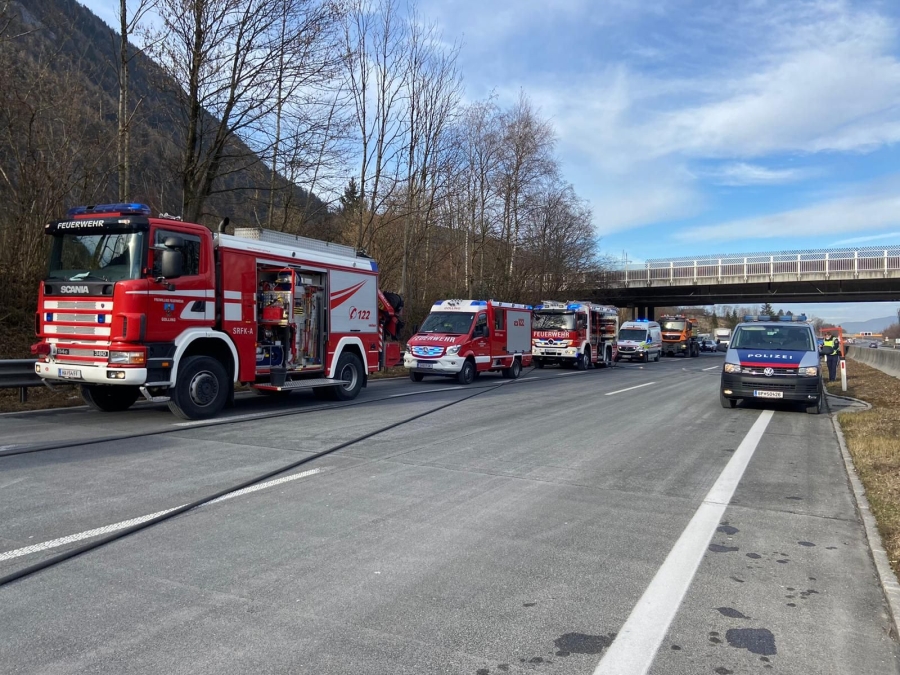 Dienstagmittag wurde die Freiwillige Feuerwehr Golling zu einem Verkehrsunfall mit zwei LKWs auf die A10 gerufen.