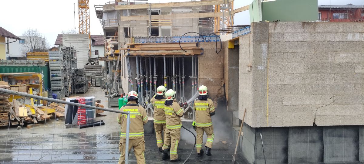 Zu einem Brand auf einer Baustelle in der Gangsteigstraße wurde die Feuerwehr Golling am Samstagvormittag gegen 09:34 Uhr alarmiert. Aufmerksame Nachbarn bemerkten eine Rauchentwicklung im Bereich der Fassade und alarmierten die Feuerwehr.