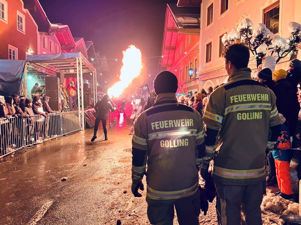 20 Mann der Feuerwehr Golling waren heute mit zwei Fahrzeugen beim Gollinger Krampuslauf vor Ort, um im Notfall eingreifen zu können!