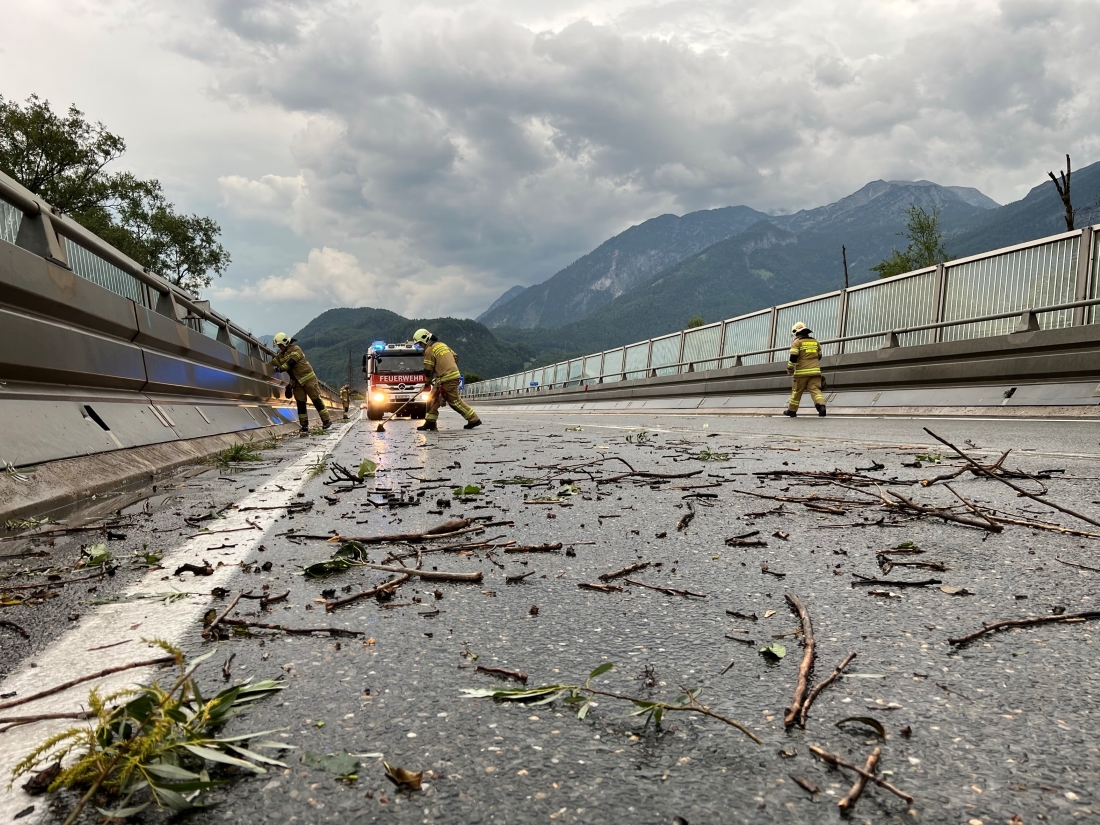 Um 16:00 Uhr wurde die Feuerwehr Golling nach einem kurzen, aber heftigen Sturmereignis zu einem umgestürzten Baum auf die A10 Tauernautobahn im Bereich des Zubringers alarmiert.