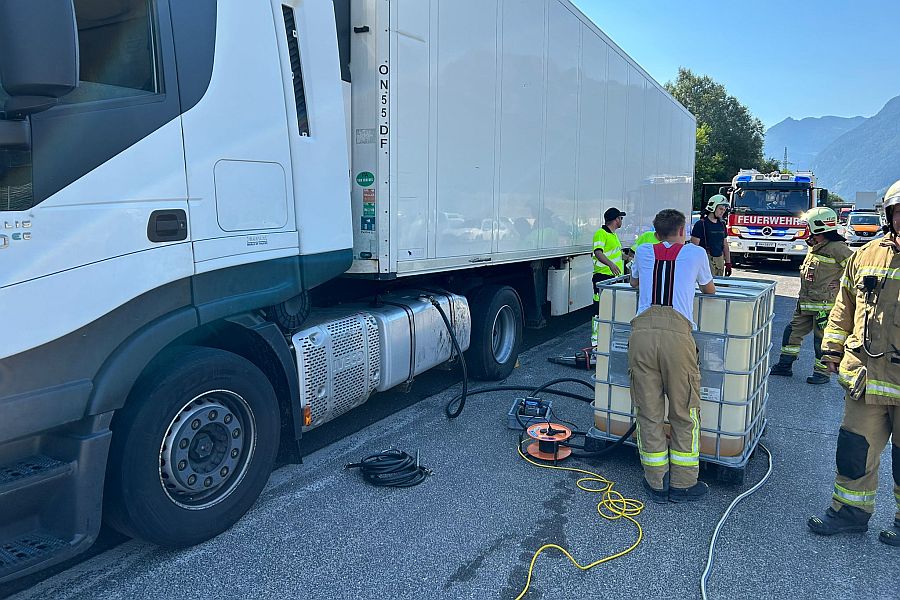 Gegen 07:34 Uhr wurde die Feuerwehr Golling zu einer Ölspur auf der A10 alarmiert. Nach einem technischen Gebrechen hat eine Sattelzugmaschine eine größere Menge Hydrauliköl verloren.