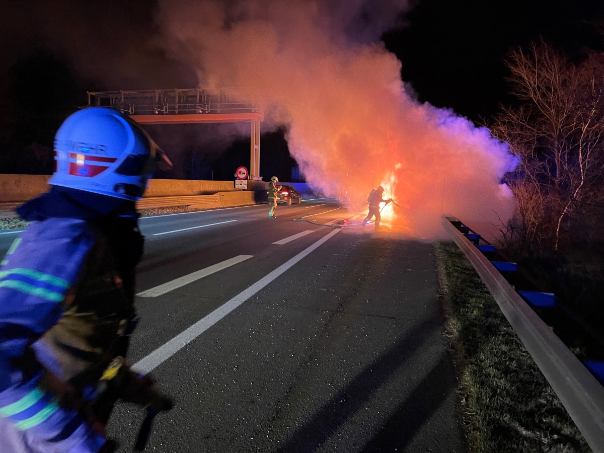 An diesem Dienstagabend wurde die Freiwillige Feuerwehr Golling um 17:52 Uhr zu einem Fahrzeugbrand auf der A10 in Fahrtrichtung Villach alarmiert.