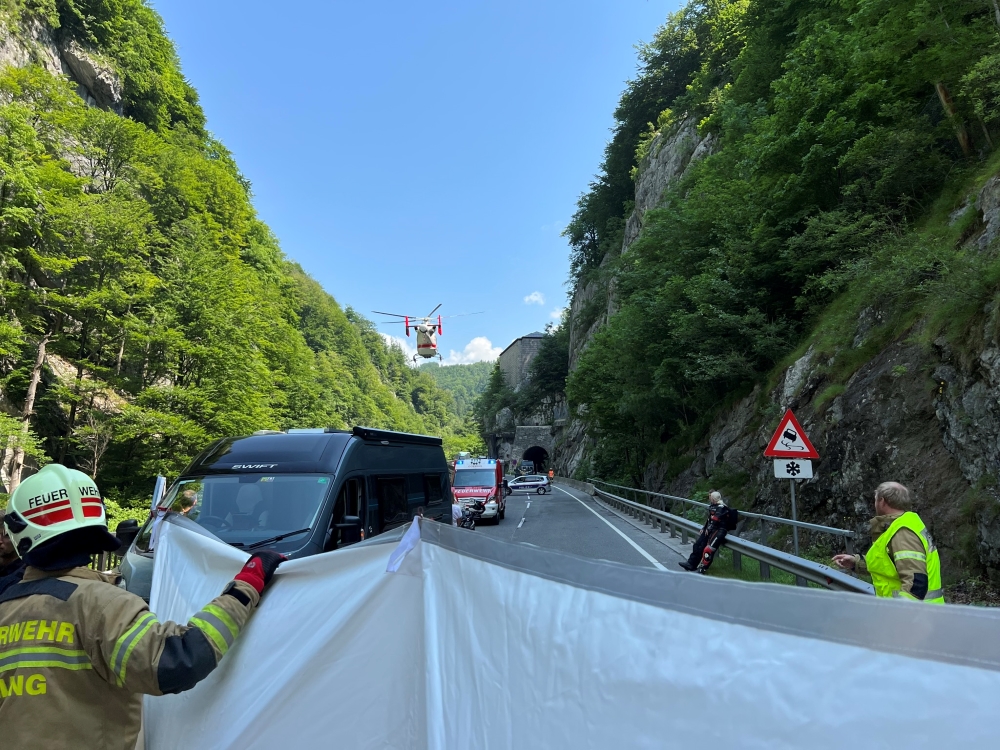 An diesem Samstagvormittag wurde die Feuerwehr Golling um 11:04 Uhr zu einem Verkehrsunfall im Ofenauertunnel alarmiert. Zwei Fahrzeuge kollidierten miteinander und wurden zum Teil gegen die Tunnelwand geschleudert. Aufgrund des Sonderalarmplans wurden zusätzlich die Feuerwehren Werfen und Pfarrwerfen zum Einsatz alarmiert, dass sich aufgrund der enorm schwierigen Anfahrt bei diesem Einsatz bewährt hat.