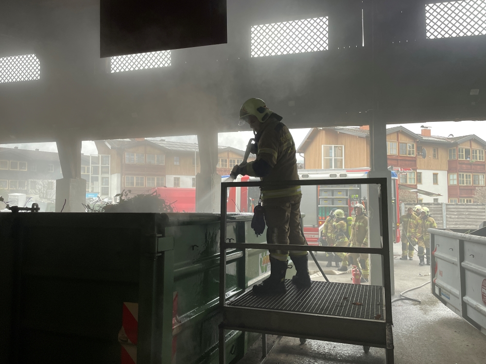 Zu einem Brand beim Recyclinghof wurde die Feuerwehr Golling an diesem Samstag um 13:15 Uhr alarmiert. Ein Container gefüllt mit Grünschnitt begann zu brennen. Durch die massive Rauchentwicklung und den Brandgeruch wurden einige Passanten auf den Brand aufmerksam und alarmierten die Feuerwehr.