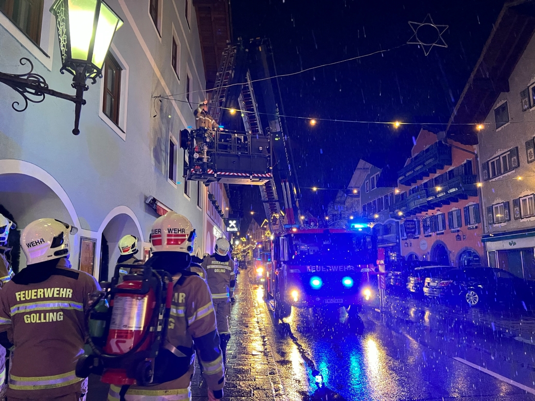 „Brand elektrische Anlage – Weihnachtsbeleuchtung brennt ab“, so lautete die Alarmierung für die Feuerwehr Golling an diesem Montagabend. Aufmerksame Passanten bemerkten Rauch und kleine Flammen bei einem Teil der Weihnachtsbeleuchtung im Markt und verständigten die Feuerwehr.