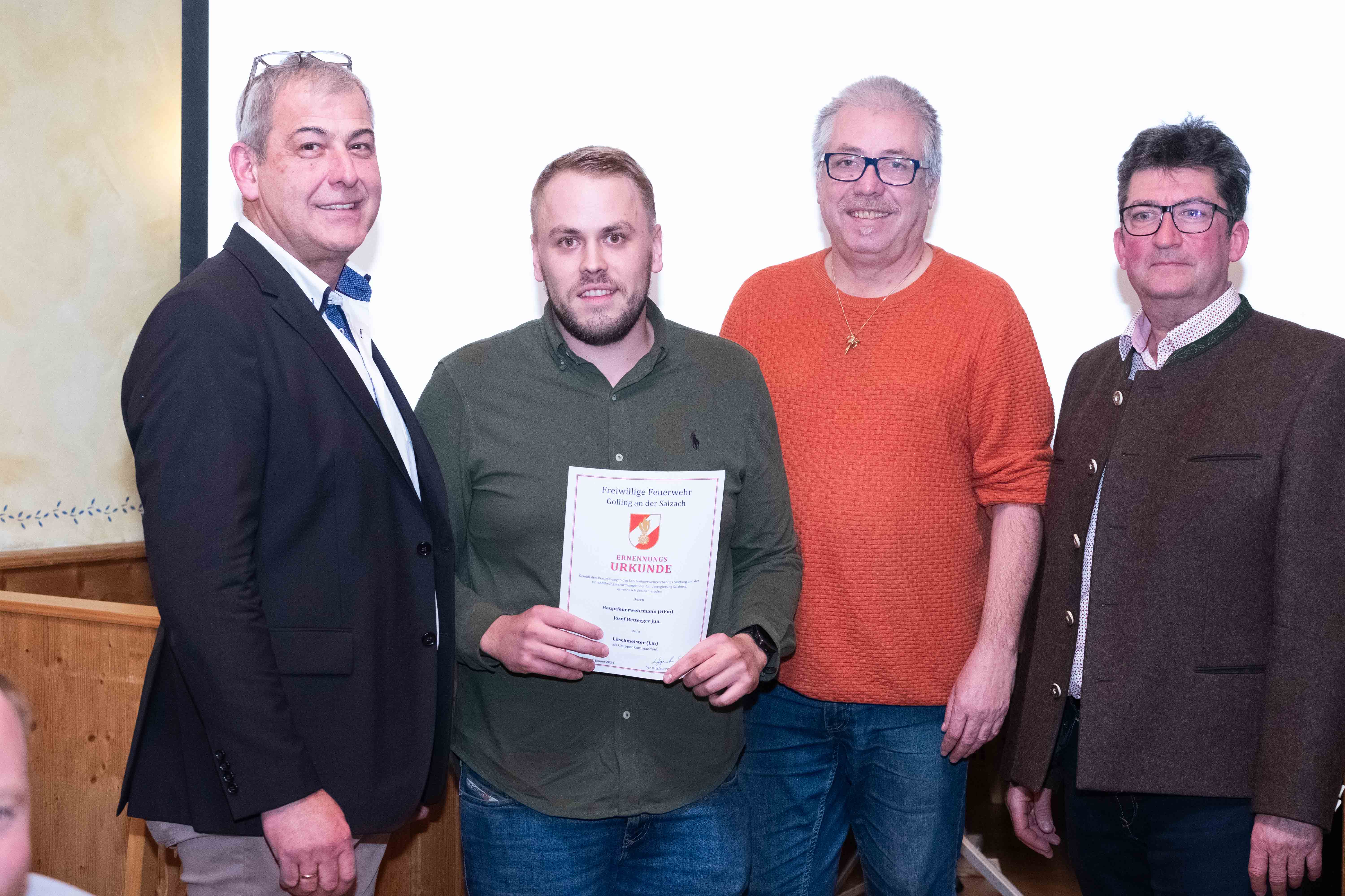 Im Rahmen der Mitgliederversammlung erfolgten auch verdiente Beförderungen: Da der Landesfeuerwehrverband im vergangenen Jahr den Dienstpostenplan geändert hatte; ist neben dem Ortsfeuerwehrkommandant nun auch sein Stellvertreter OBI Martin Schönleitner als separate, den Zügen übergeordnete Position geführt. Somit wurde Brandmeister Franz Sunkler zum Zugskommandanten des ersten Zuges befördert, während Hauptverwalter Andreas Gruber im als sein Stellvertreter im gleichen Zug folgt. Im zweiten Zug stiegen Löschmeister David Struber zum Gruppenkommandanten und Hauptfeuerwehrmann Josef Hettegger jun. zum stellvertretenden Gruppenkommandanten auf.