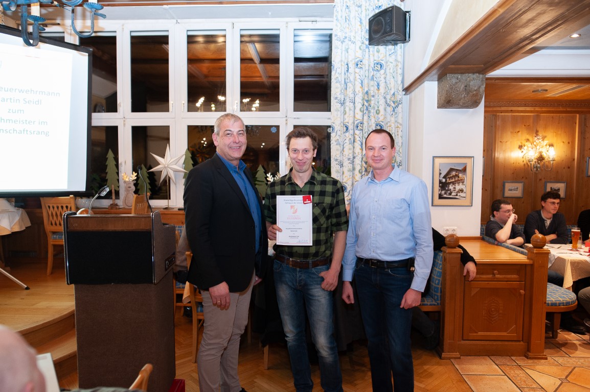 Jene zwei Jugendmitglieder, welche mit Jahreswechsel in den Aktivstand überstellt wurden, sowie einen weiteres neues Mitglied wurden vom Ortsfeuerwehrkommandant der Mannschaft persönlich vorgestellt. Eine Beförderung wurde im Rahmen der Mitgliederversammlung ebenfalls durchgeführt: HFm Martin Seidl wurde zum Löschmeister im Mannschaftsrang befördert.