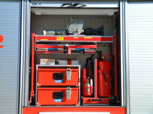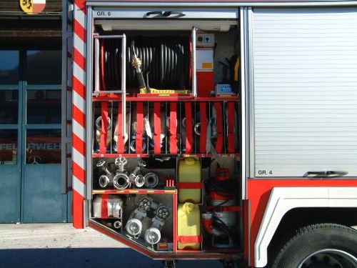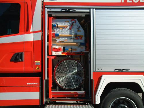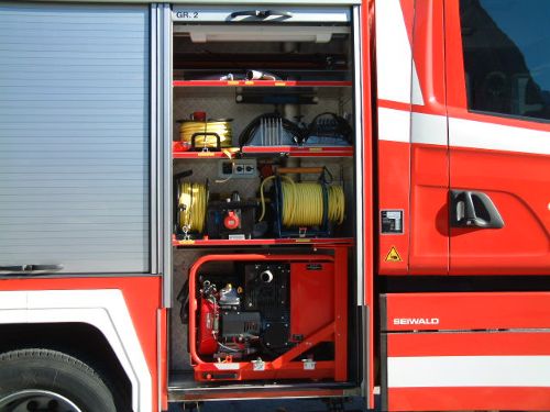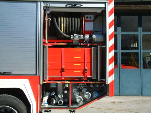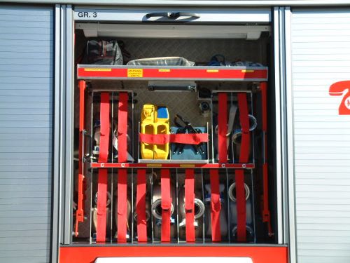 Standardausrüstung eines Tanklöschfahrzeuges. 3000 Liter Wasser, Einbaupumpe Rosenbauer, 2 Hochdruck-Angriffe 60m und 90m, Wasserführende Armaturen, B-,C- und HD-Schläuche, manueller Wasserwerfer, Ölbindemittel, Hitzeschutzanzüge, Lichtmast, div. Werkzeug, Gasspürgerät. Spezialausrüstung: 7 Stk. Atemschutzgeräte BD 96 "Doppelpack", 300 Liter Schaummittel-Tank, Wasserwerfer-Monitor ferngesteuert, Schaumschnellangriffseinrichtung 30m, voll-automatische Verkehrsleiteinrichtung.
