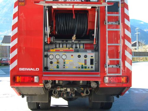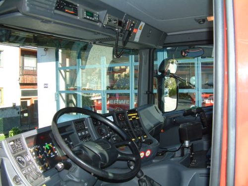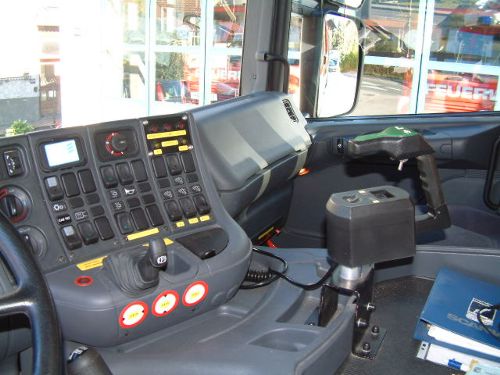 Start und Bedienung der Einbaupumpe von der Kabine aus möglich, Zumischung von Schaum getrennt möglich, Monitor mittels Joystick von der Fahrerkabine aus zu steuern.
