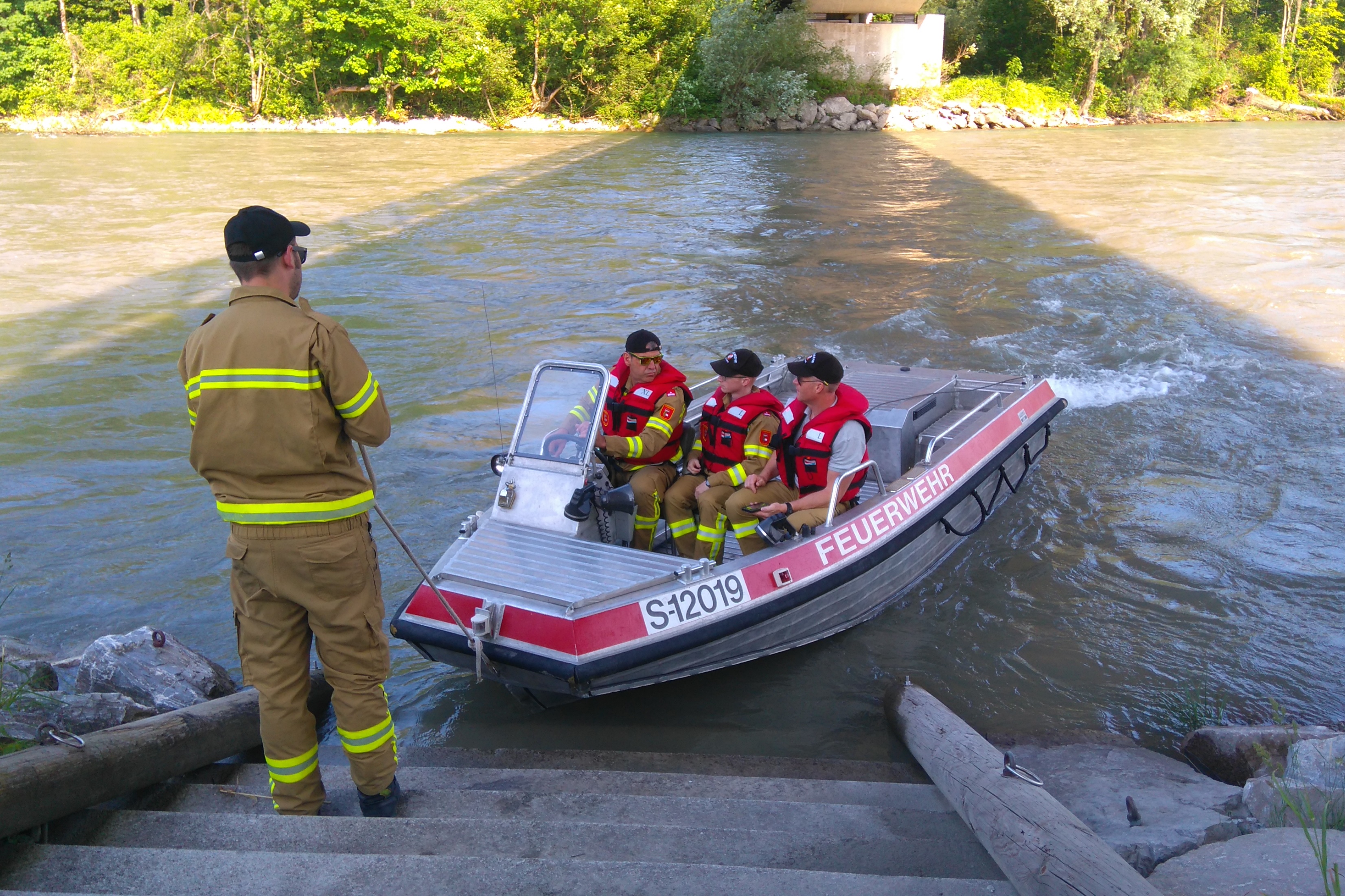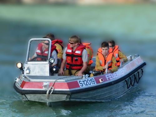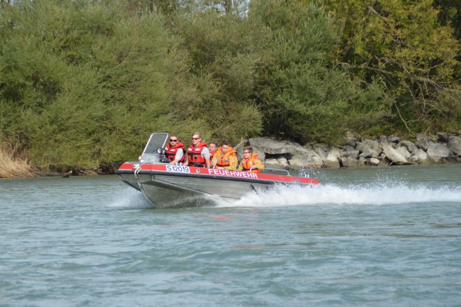 Dieses Boot mit Jetmotor findet bei Einsätzen auf unseren Flüssen Salzach, Lammer sowie auf Binnenseen Verwendung, wie Menschenrettungen, Bergungen, Errichten von Ölsperren