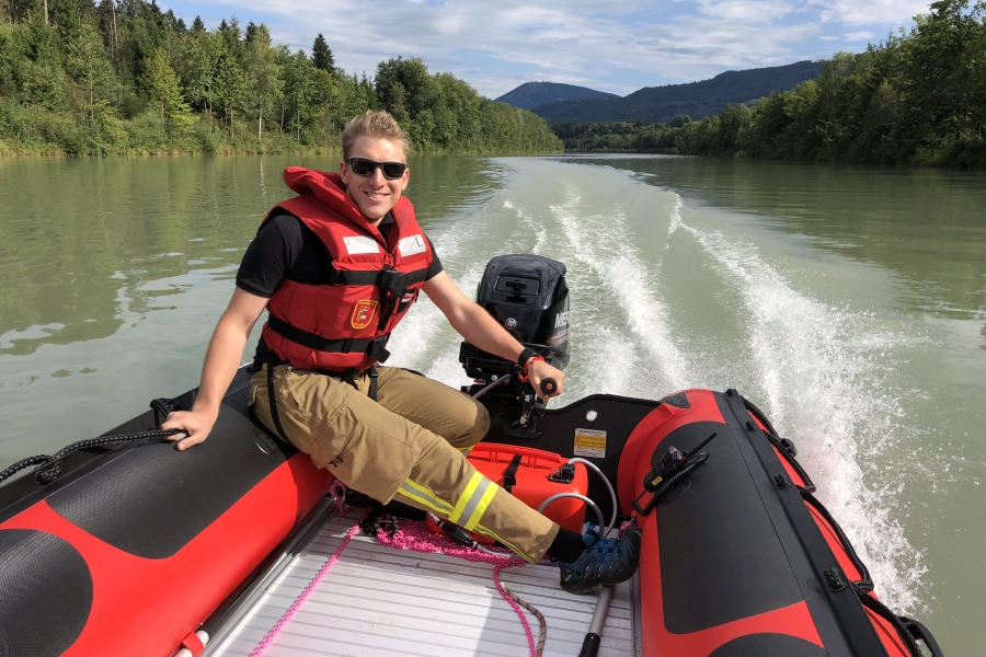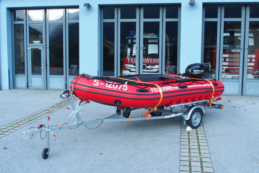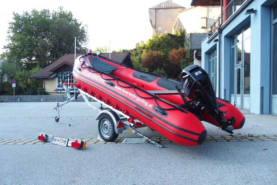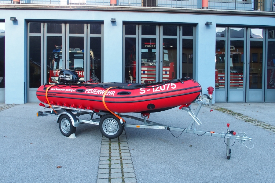 Das Schlauchboot mit Aussenbordmotor kommt bei Menschenrettungen, Bergungen und Hilfeleistungen auf unseren Flüssen Salzach und Lammer zum Einsatz. Nach dem Hochklappen bzw. Abnehmen des Motors kann es auch als Paddelboot in sehr seichten Gewässern verwendet werden (Seitenarme und Buchten von Flüssen)