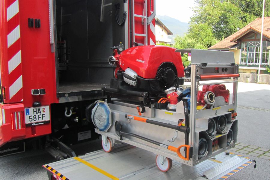 - Kisten-Wechselsystem für Kleinmaterial im Geräteraum 4; mit den anderen Fahrzeugen der Feuerwehr Golling kompatibel
