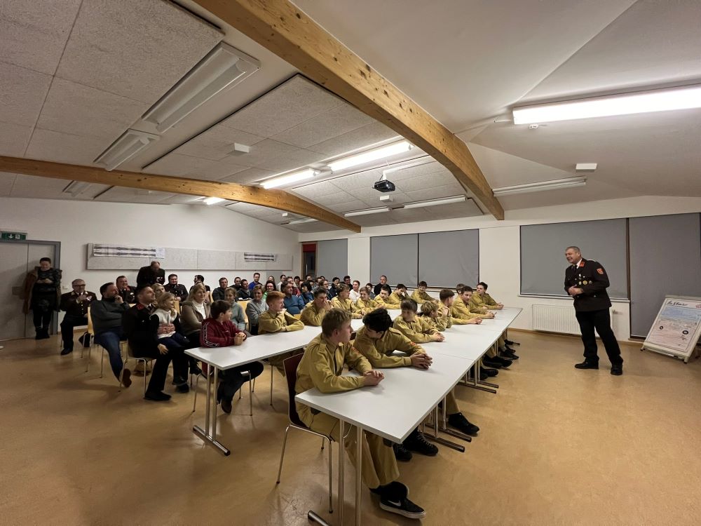 Bei der anschließenden Feier, zu der auch alle Eltern geladen wurden, konnte ein kurzer Jahresrückblick von Jugendbetreuer Lm Manuel Grundbichler gegeben werden. Nach einigen Grußworten durch die Ehrengäste, konnten die neuen Dienstgrade an die Jugendlichen übergeben werden.