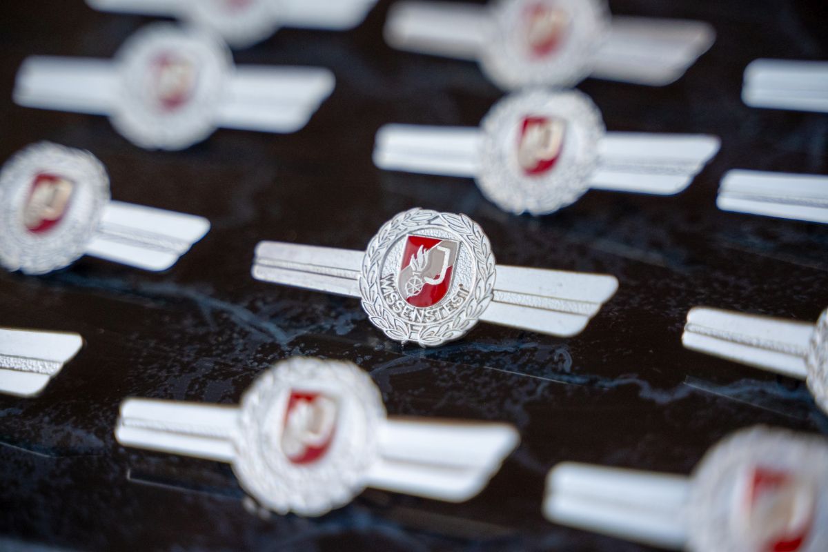 Bei der Verleihung der Abzeichen in den Stufen Gold, Silber und Bronze waren eine Vielzahl an Ehrengästen, Ortsfeuerwehr- und Löschzugskommandanten anwesend, allen voran Landesfeuerwehrkommandant FVPräs Günter Trinker.